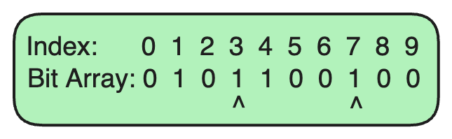 我们将位数组中索引 1 和 4 的位设置为 1。